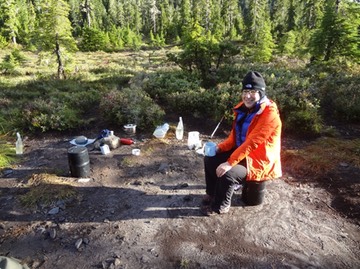 On September 2, 2016 I (Wayne) went on a 4 day backpacking trip with 1 other person (Juli). Our objective was to backpack a portion of the Skyline Trail, and climb Kimta Peak. We did the full Skyline Trail trip in August of 2013 (see note 1 and 2 below). On that trip we intended to climb Kimta Peak, but we did a false summit of Kimta Peak instead. This time, we went the opposite direction with respect to the 2013 trip. And we hiked up the Big Creek Trail. On the first day we started backpacking at 12:30 PM, and reached Three Lakes Shelter camp at 7:00 PM.