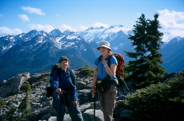 Karen, Juli (L to right) about an hour away from the Cat Peak summit