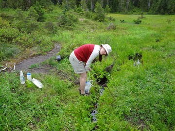 Juli getting ready to filter water