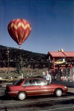 After the meet ended at 4:30 pm, we drove to Shasta, CA, and stayed in a motel. The next morning we stopped for breakfast and saw a hot air balloon land nearby (see photos below). I dropped Vermont off, and I returned the car rental in Seattle at 8:20 pm. The total (round) trip mileage we drove was 1,637 miles.
